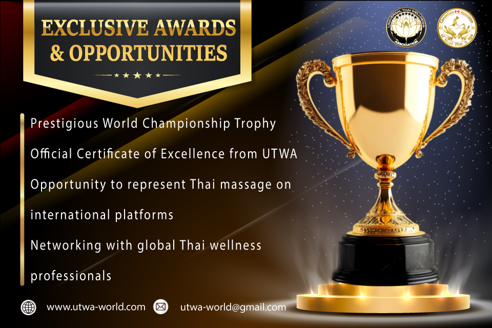 The Universal Thai Wellness Association (UTWA) proudly invites Thai massage professionals and enthusiasts worldwide to compete in the UTWA Championship 2025—the largest Thai massage competition on a global stage!